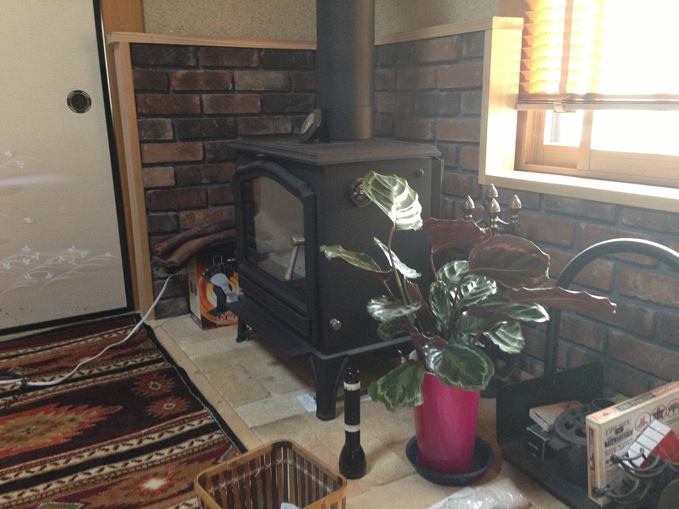植栽に使用した土には、弊社ショールームで展示している薪ストーブから