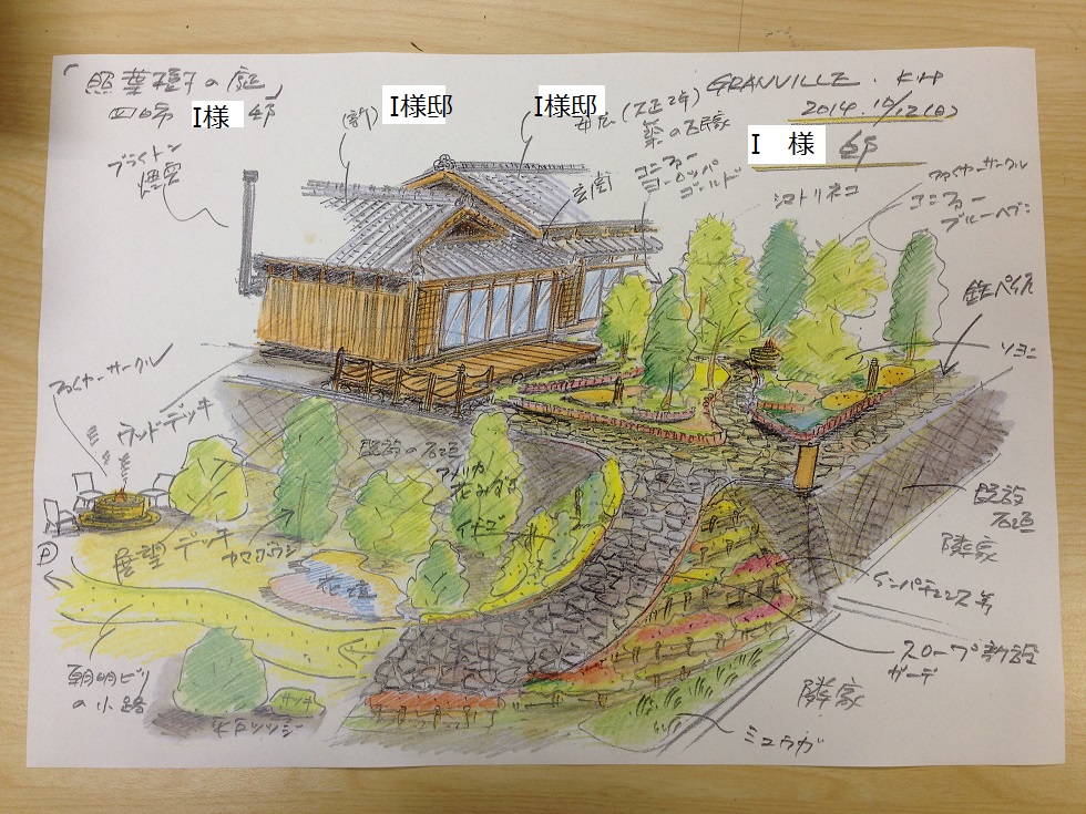 お客様は今まで思いもしなかったイメージ図をわずかの時間で掲示され、大変驚かれるとともに今後本格的にガーデニング工事をご検討されることになりました。
