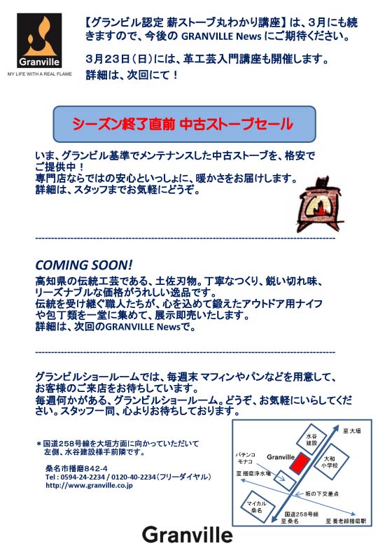 グランビルでは、全5回の薪ストーブ講座を開催します。名付けて、<グランビル認定 【薪ストーブ丸わかり講座】>です (^^)