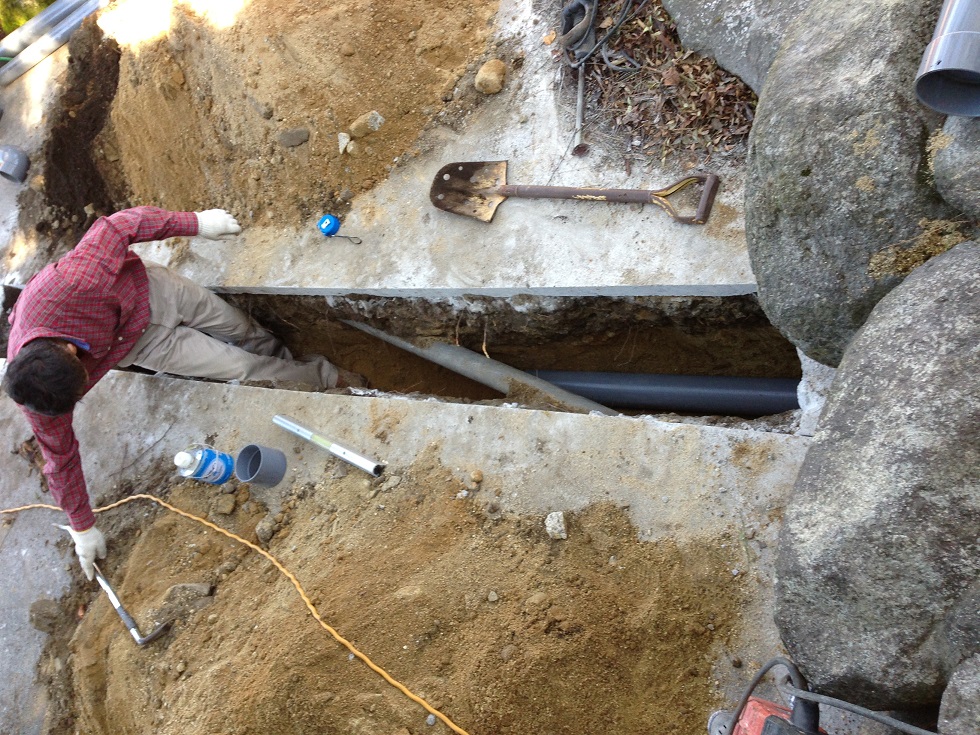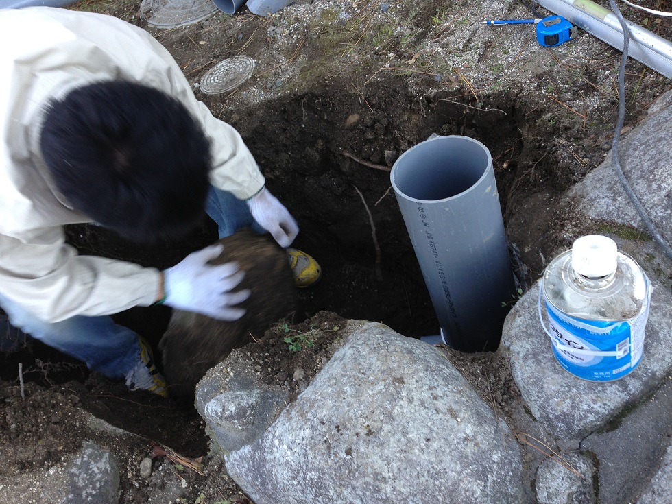 本日はまず、外構のための土木作業と下水工事に取り掛かりました。