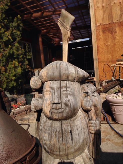 そんな中、罰当たりな風景が目に止まりました。大黒さんの頭に刷毛を突き刺す不届き者がいました!