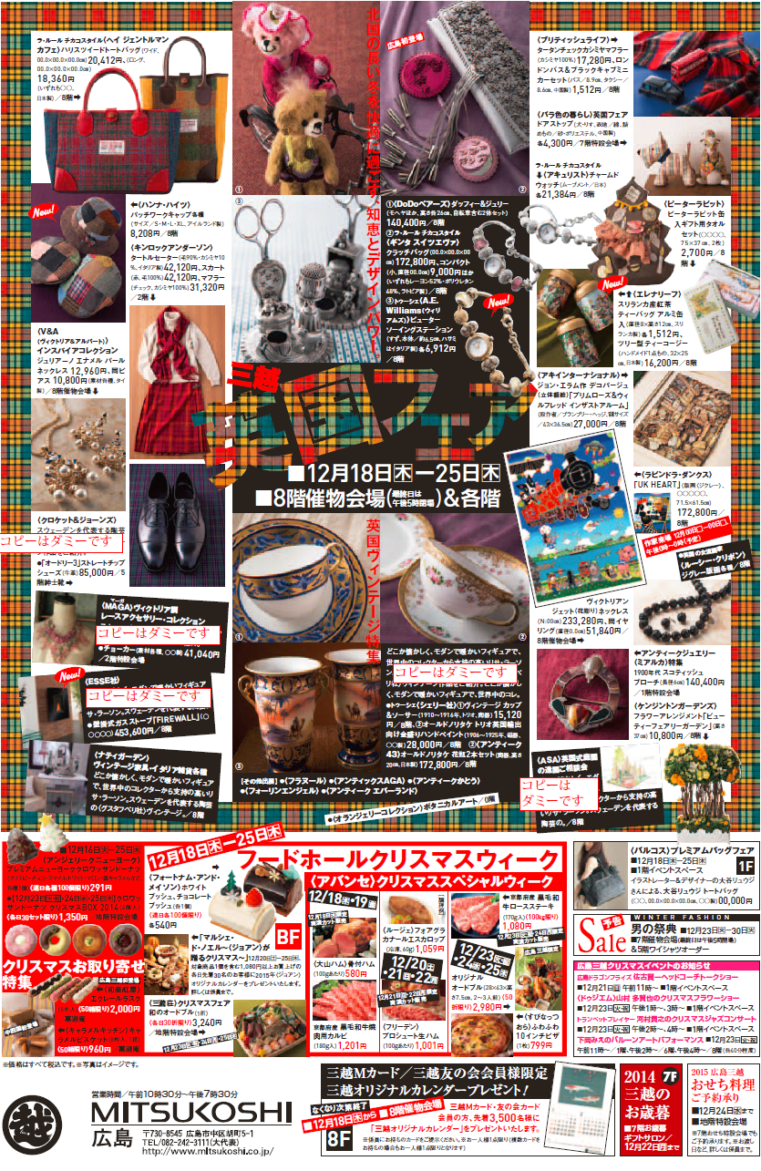 グランビルは12月18日(木)から25日(木)まで、広島三越において催される英国フェアに出展します。
