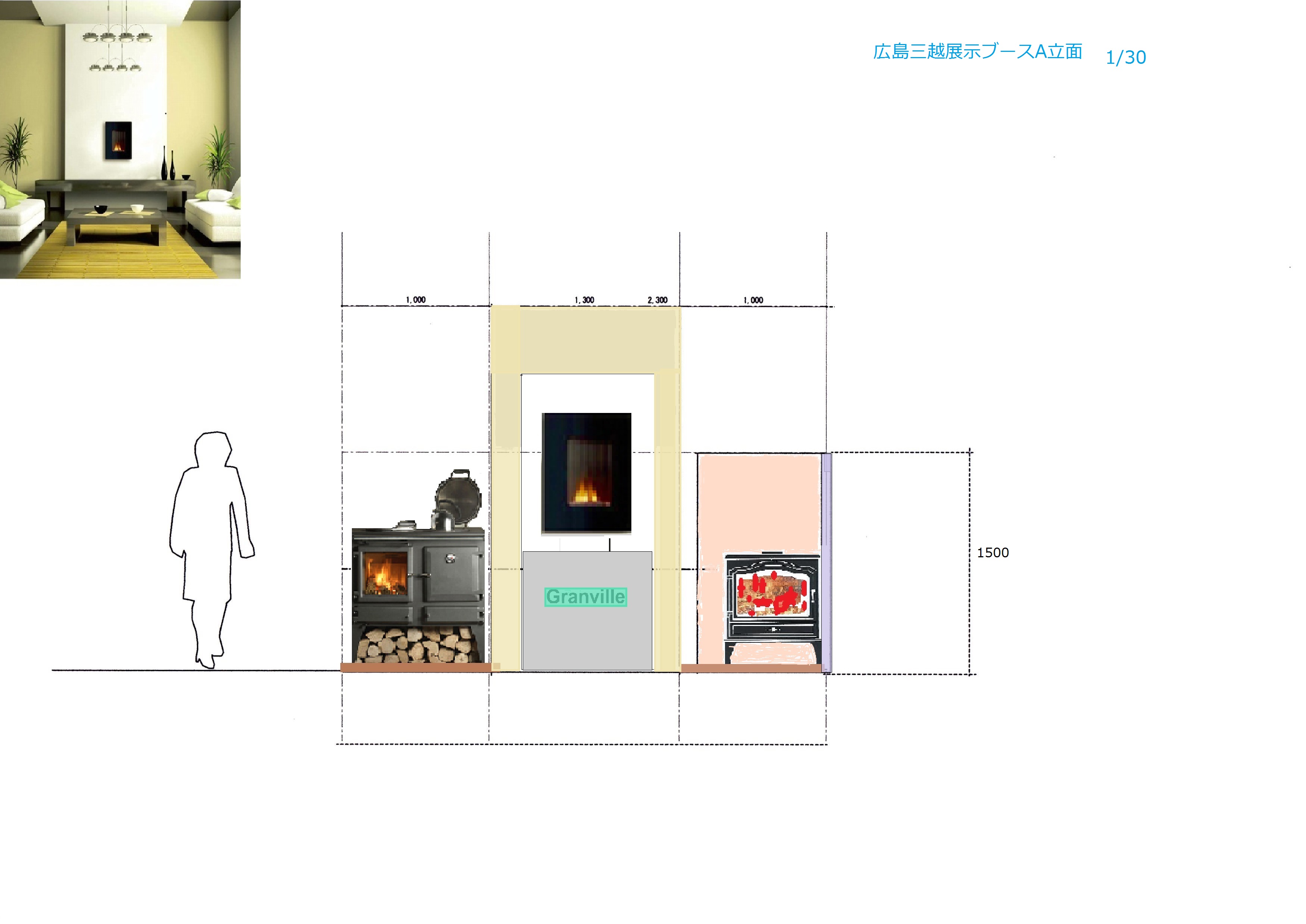 英国フェアでは広島三越さんのご配慮で8階催物会場にガス管を敷設していただけることになり、Firewall39"の燃焼実演が可能となりました。
