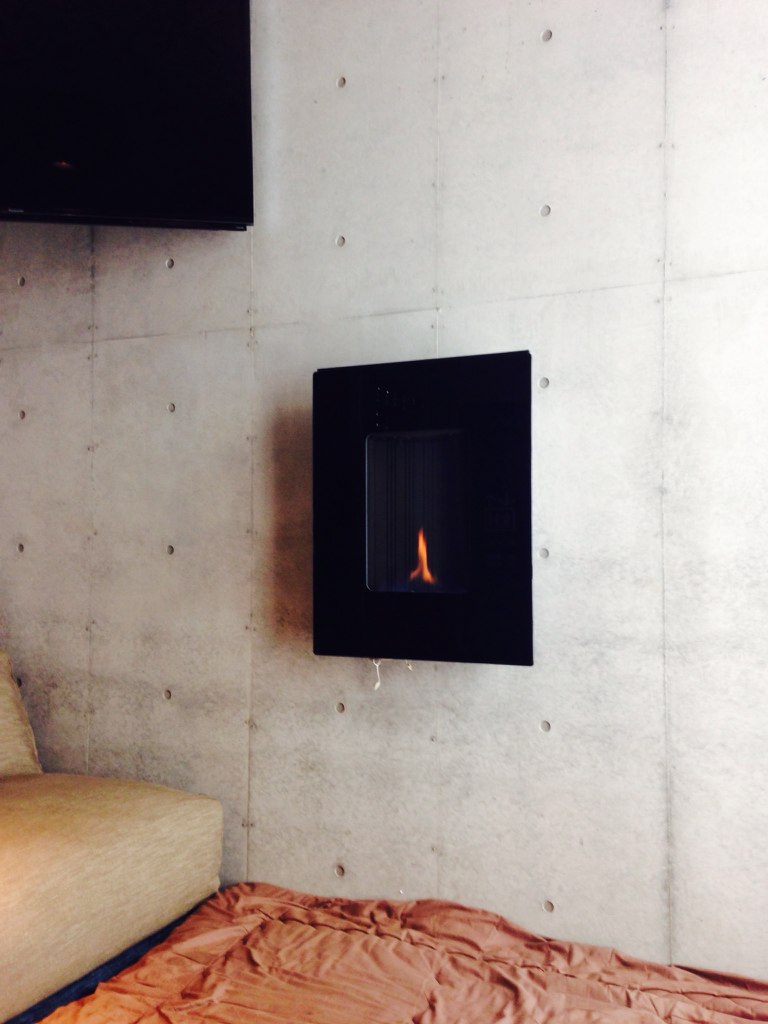 ファイヤーウォールという商品は読んで字のごとく、壁に炎を飾る画期的なガス暖炉です。