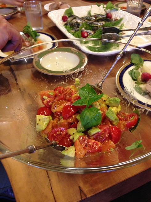 オレンジとアボガド・トマトのサラダとあじのオリーブオイル・マリネ焼きも完成しました!
