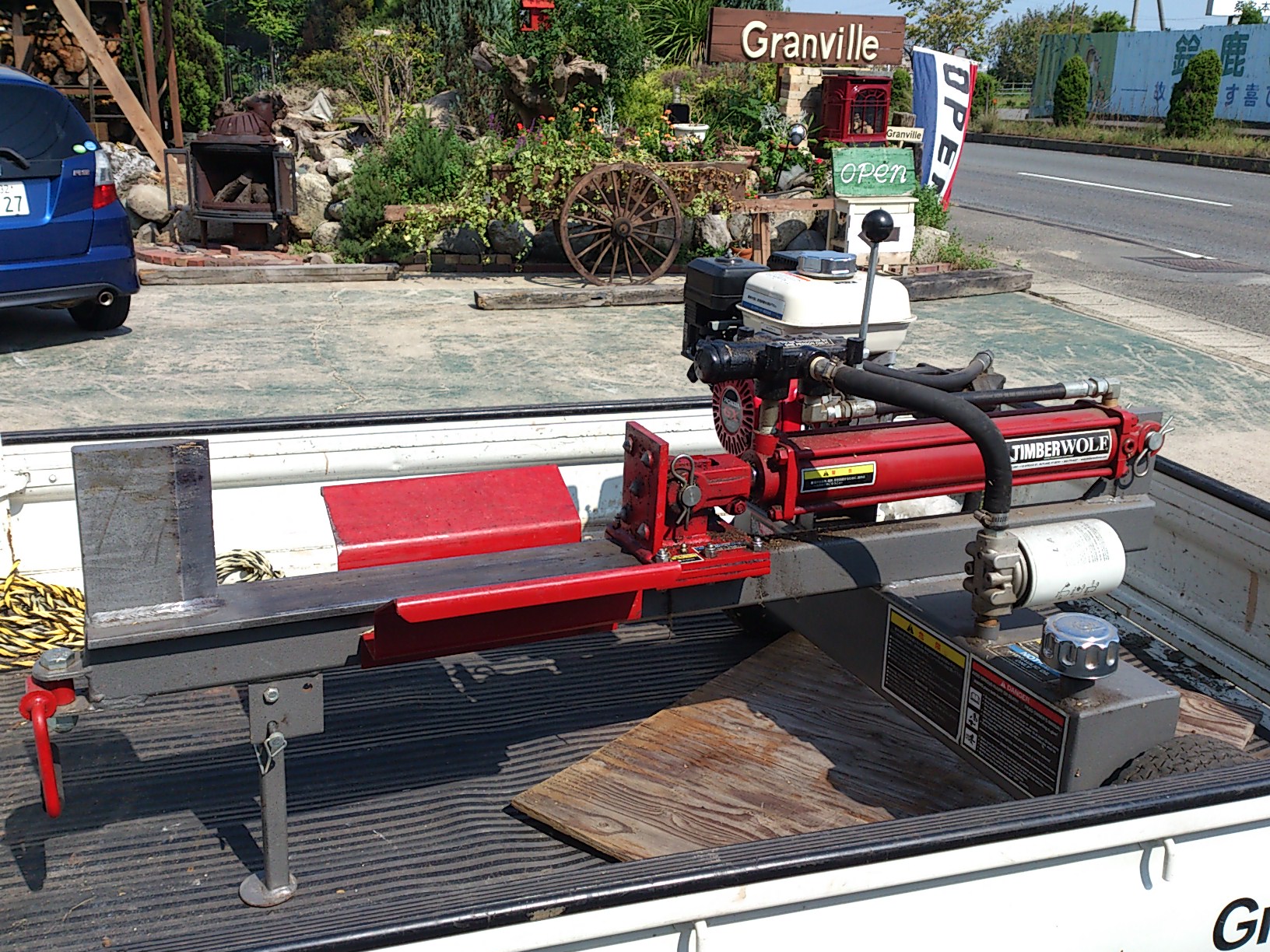 女性でも簡単に使える、ティンバーウルフのエンジン・油圧式の薪割り機!!